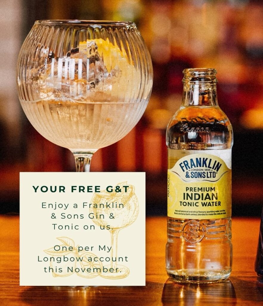 This November, we’re making your visits even more rewarding! Members of our ‘My Longbow’ app will enjoy double points on every purchase, plus, as a special treat, receive a free Gin and Tonic to enjoy at any Longbow venue this month.
